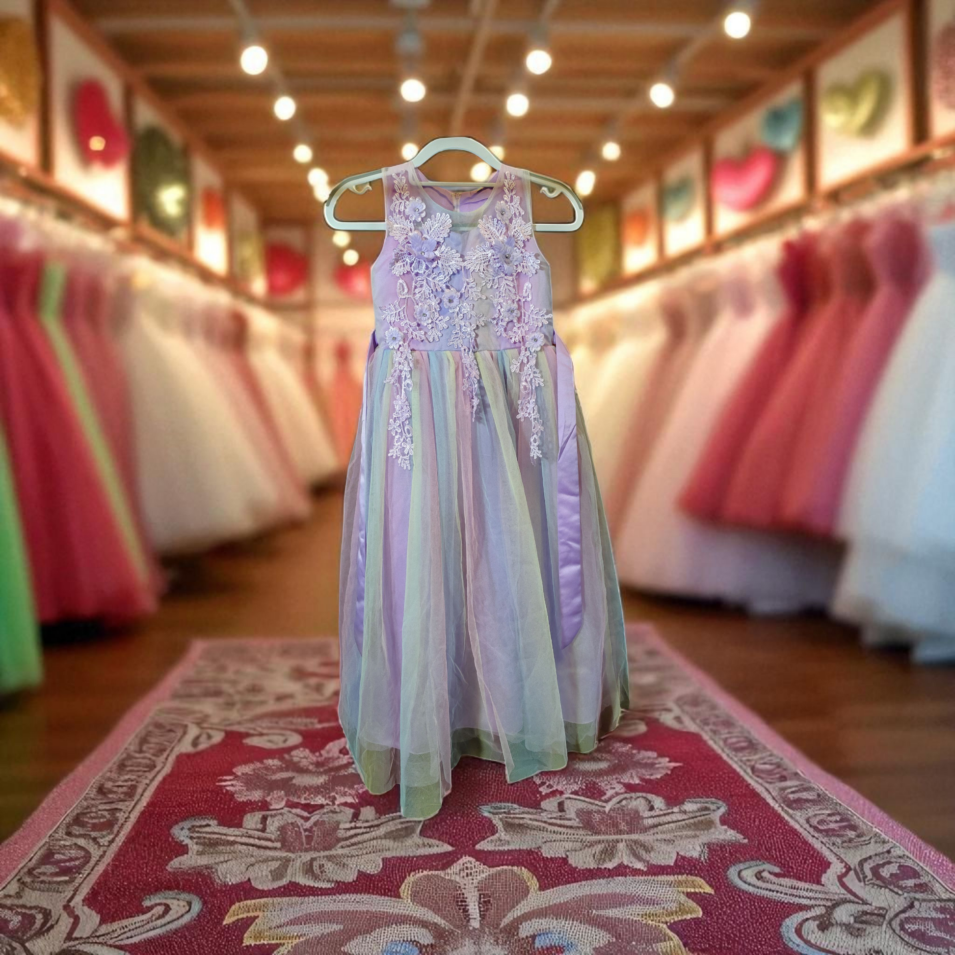 pre teen girl size LG purple/multi color dress