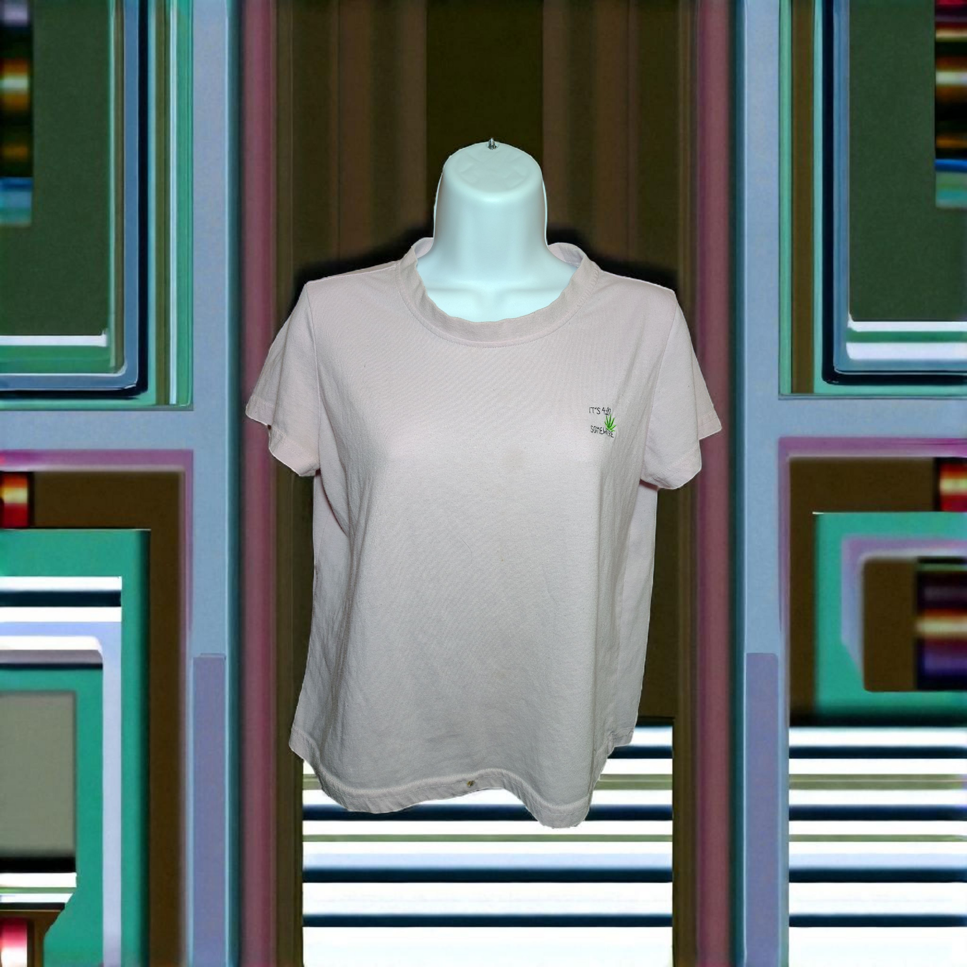 Woman's Large rue 21 pink "it's 420 somewhere" pot leaf' short sleeve shirt
